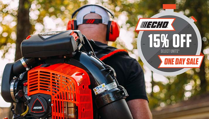 One Day Sale Events are for participating dealers only. Discount applies on the day of the participating dealer sales event, on in-stock serialized units only. See your local ECHO dealer for any additional promotion details. Not to be combined with any other offers.